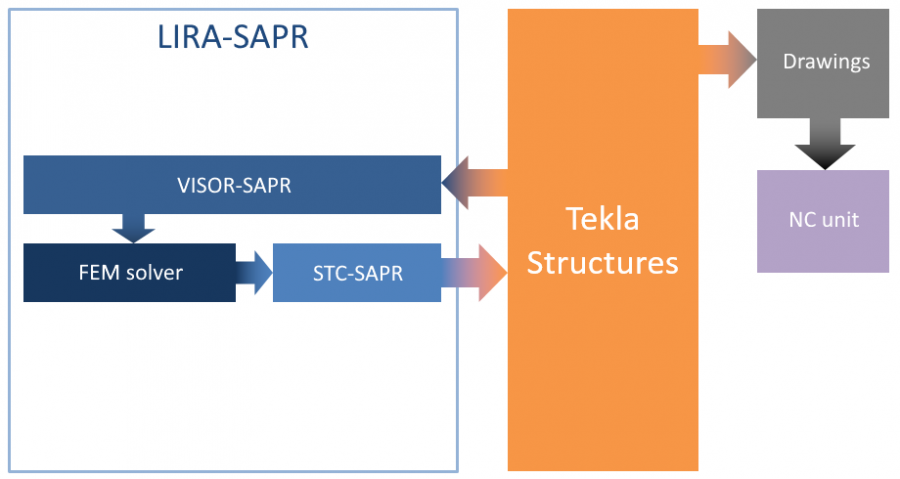 In Tekla Structures it is possible to generate analysis model that includes bars, plates, loads and boundary conditions. LIRA-FEM program supports two-way integration with Tekla Structures.