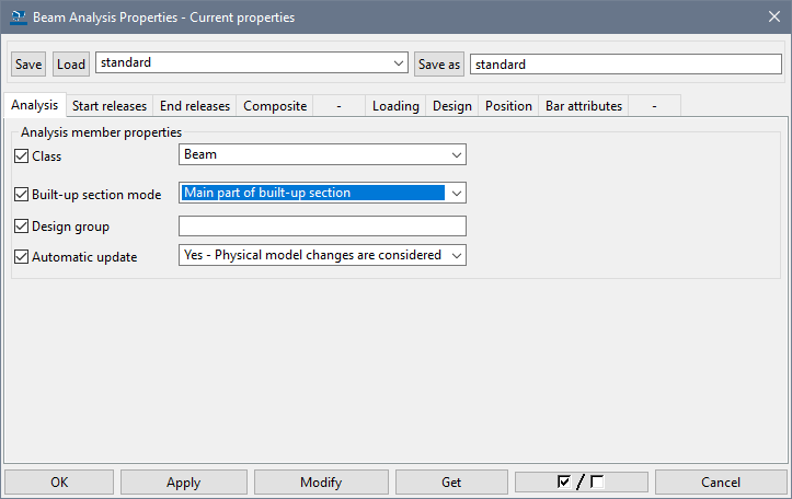 Then, in the Tekla analysis model in the properties of one of the bars (that will become the main one), in the 'Built-up section mode' option, select the 'Main part of built-up section' (see Fig.10). Twin profiles will be transferred correctly only if the rotation angle of both elements in such profile is the same.