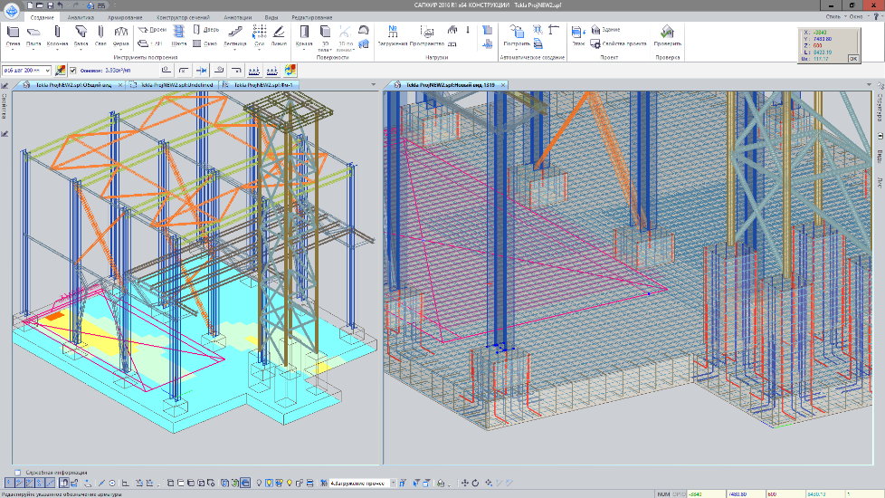 In this case, when the structure is analysed, reinforcement is selected and arranged in Design of RC structures module, analysis results may be exported to Tekla Structures where it is possible to obtain RC, steel and detailed drawings. A distinctive feature of the Tekla program is the generation of data for numerical control (N/C) machine. This approach is shown in Fig.2.