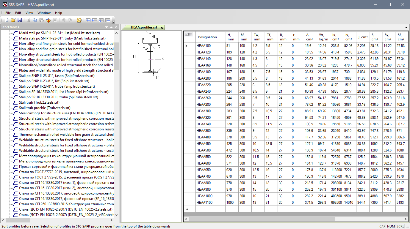 When the steel tables are successfully exported, it is possible to export Tekla Structures models to LIRA-FEM program. It is possible to preview and edit the exported steel tables in the Steel Rolled Shapes (SRS-SAPR) module (Editable steel tables) (see Fig.8).