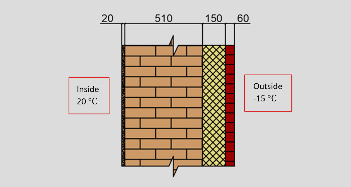 Let us consider an example of analysis of heat transfer of a brick house external wall.
