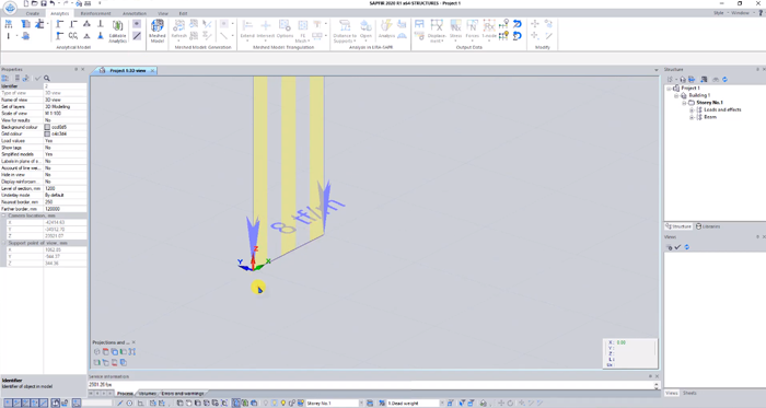 The construction being designed should be fixed in the space, so the user should select the nodes to be fixed and the directions they should be fixed.