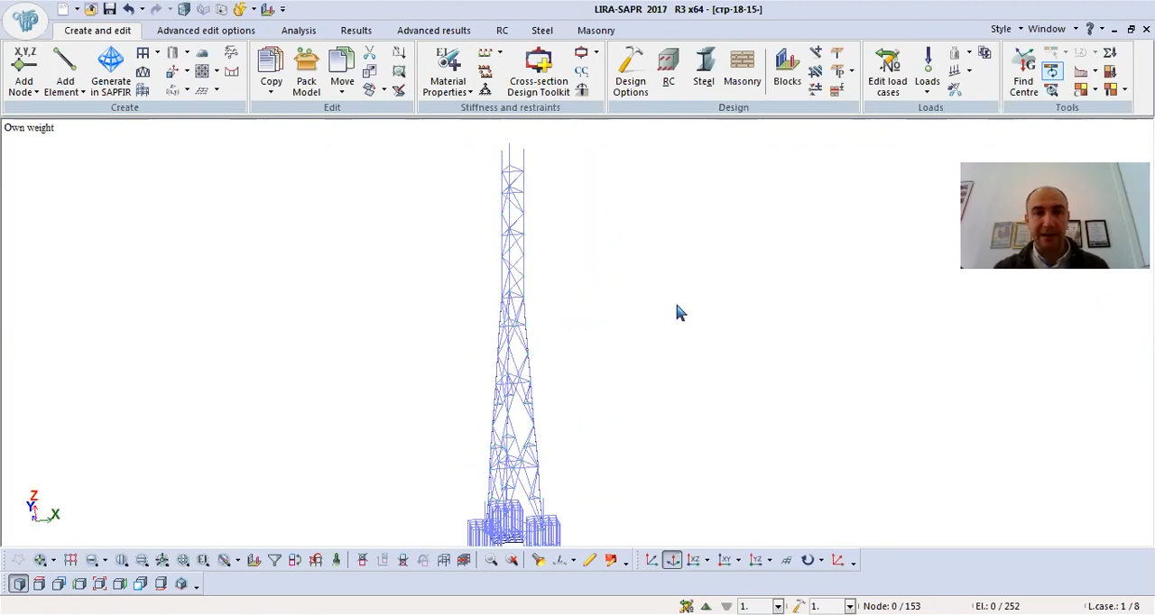 Step-by-step guide for novice users of the LIRA-FEM software, which reveals the basics of finite element analysis. In this videoguide you will learn how to create and analyse the model of steel tower in LIRA-SAPR.