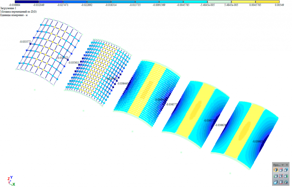Displacements at point B for the full shell wB, ' | -3.357*10-2 | -3.561*10-2 | -3.644*10-2 | -3.657*10-2 | -3.663*10-2 | -3.70*10-2 |