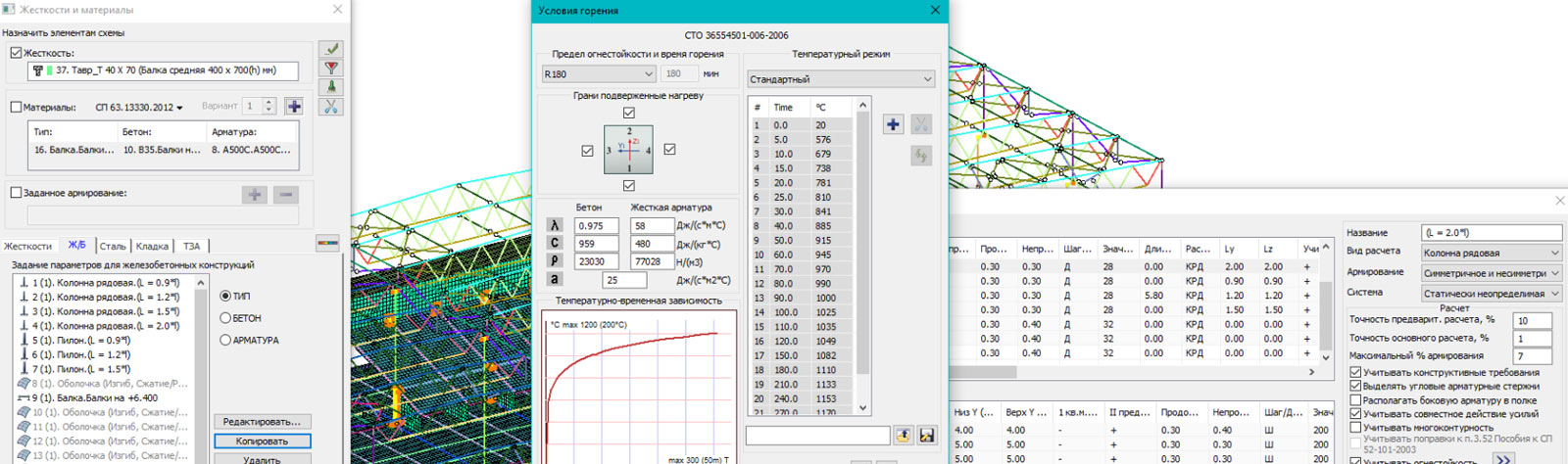 Analysis on fire resistance may be carried out either in VISOR-SAPR module or in LARM-SAPR (local mode of reinforcement).