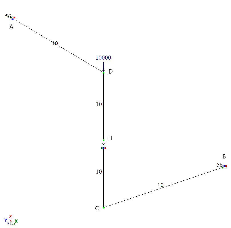 the vertical displacement Z at the joint of bars AD and HD (point D);