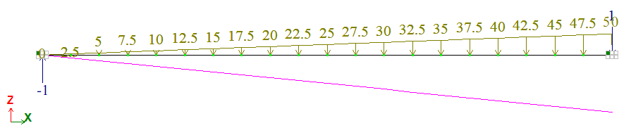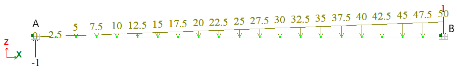 Vertical concentrated force: Ð1 = −Ð1 = 1 tf.