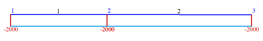 The boundary conditions are defined by applying restraints in the X, Z, and UY degrees of freedom at the end nodes of the system. The temperature change Δt relative to the initial temperature is applied uniformly along the longitudinal axes of all bar elements.