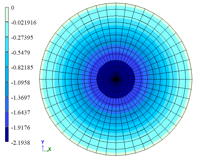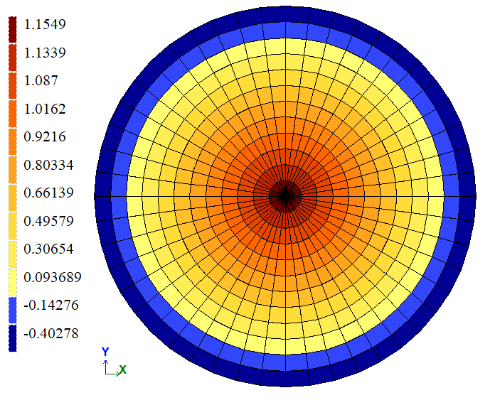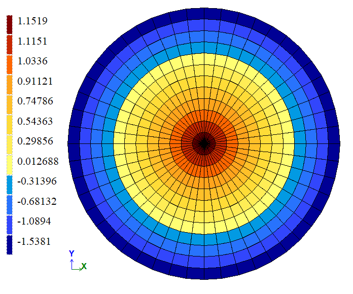 The FE mesh consists of 12 elements along the radius and 48 elements along the circumference.
