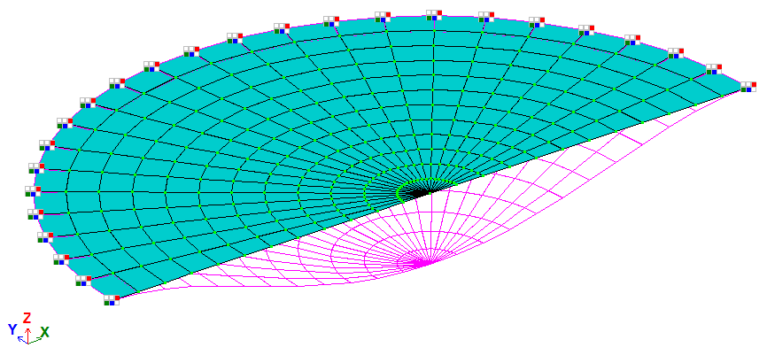 For model generation, FE 19 (quadrilateral FE of slab) and FE 12 (triangular Fe of slab) are used. These finite elements have three DOF per node: displacement along the global Z-axis and rotations about the global uX and uY axes.