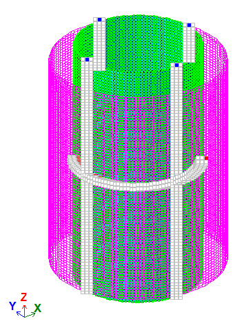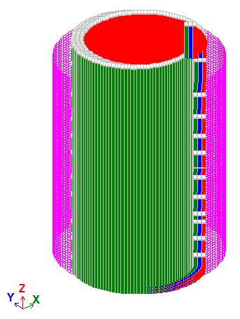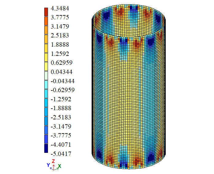 A local coordinate system is assigned to the nodes of the model (the local X1-axes are directed outward from the cylinder centre).