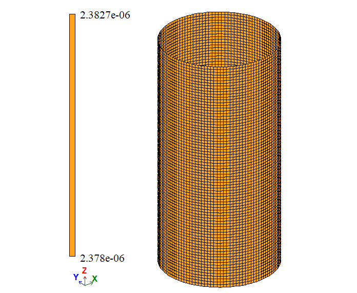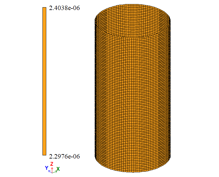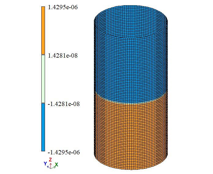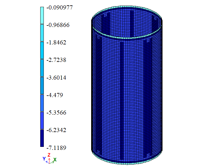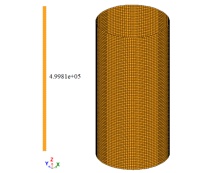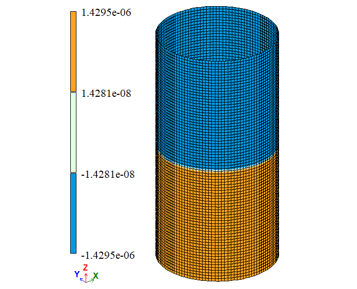 Note: As symmetry restraints were used in the boundary conditions (restraint in the Z direction at the cylinder mid-height), the vertical displacement Δy reported in the table has been doubled. |