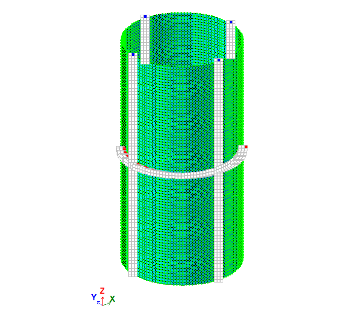 The behaviour of the cylindrical shell according to the membrane theory is achieved by imposing restraints on all rotational degrees of freedom (DOF) at all nodes of the design model.