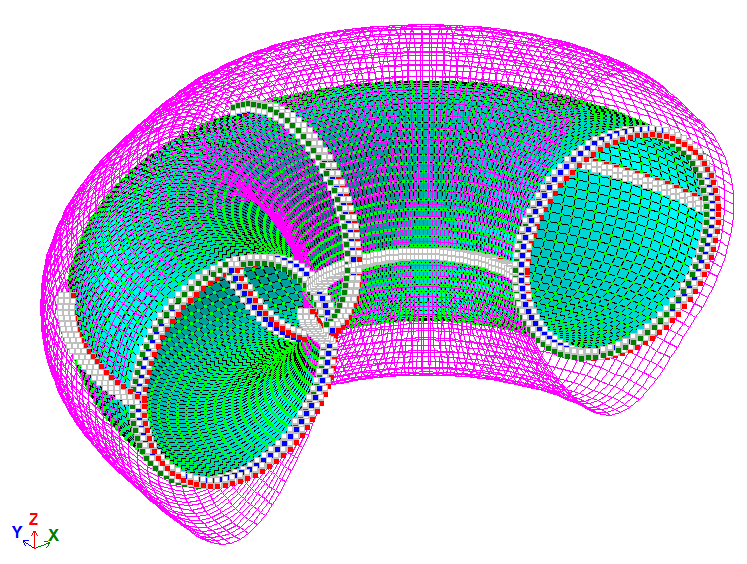 A fragment of the torus (180°) is considered in the design model. Symmetry restraints are applied to account for the truncated part of the torus.