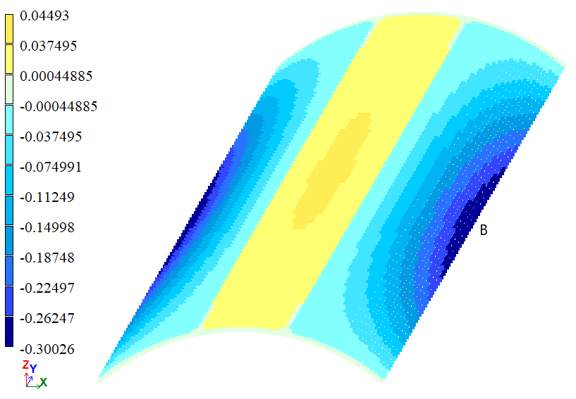 A cylindrical shell, hinged along its end (curved) edges, subjected to loading due to its self-weight.