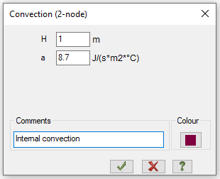 For the convective elements we also create the stiffness, and define there the heat transfer coefficients (film coefficients) for the internal and external layers: