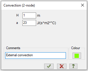 Using the external load, we apply the air temperature on the convective elements. Therefore, in the Loads we open convective heat transfer and define the temperature for the internal and external sides of the wall.