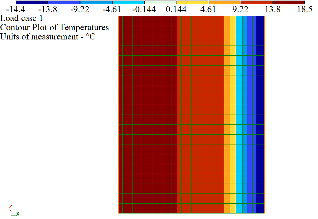 To define the air temperature, we create bar elements on the internal and external surfaces of the wall, and change their type for FE type No.1555.