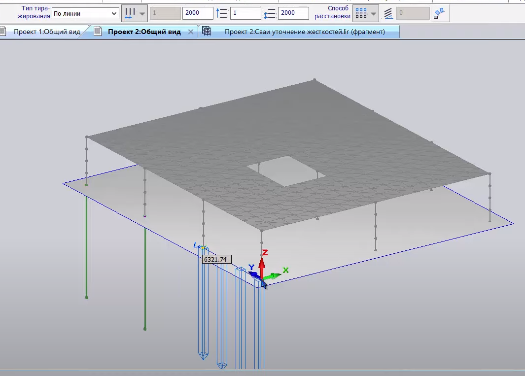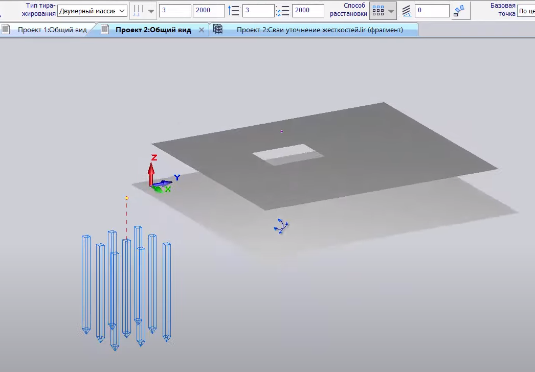 Довольно часто возникает ситуация, когда по результатам расчета приходится выполнять корректировку расстановки свай: изменять их количество, шаг, менять их жесткостные характеристики и т.д.