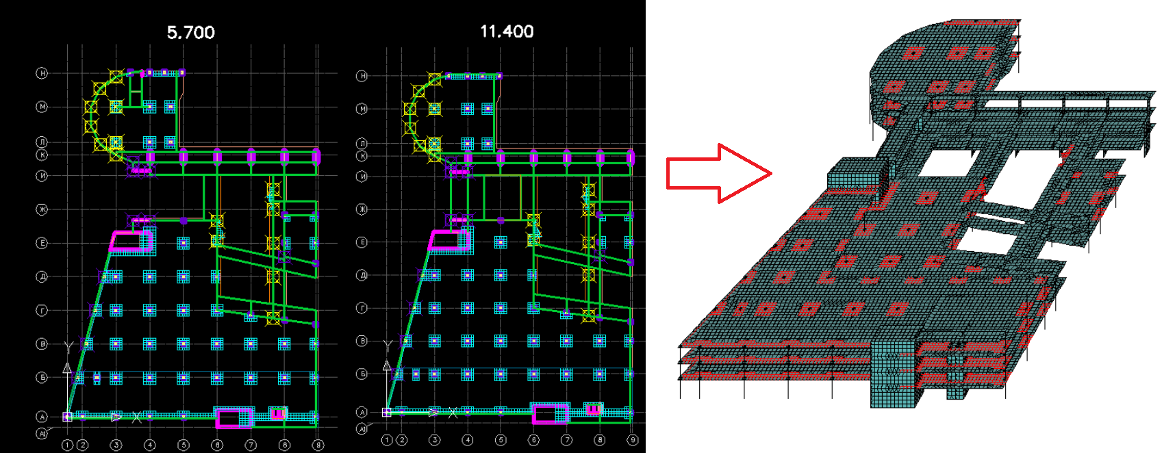 Преобразование набора плоских архитектурных планов в пространственную расчетную модель