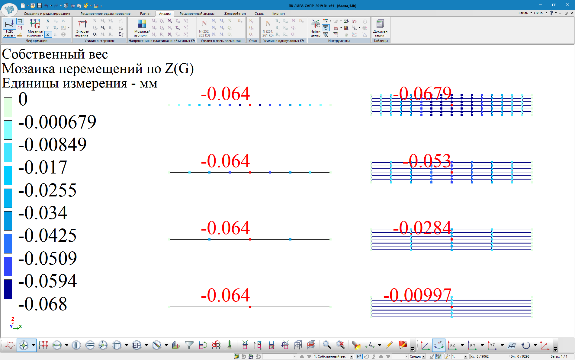 Результаты расчета (ЛИРА-САПР КЭ 10)