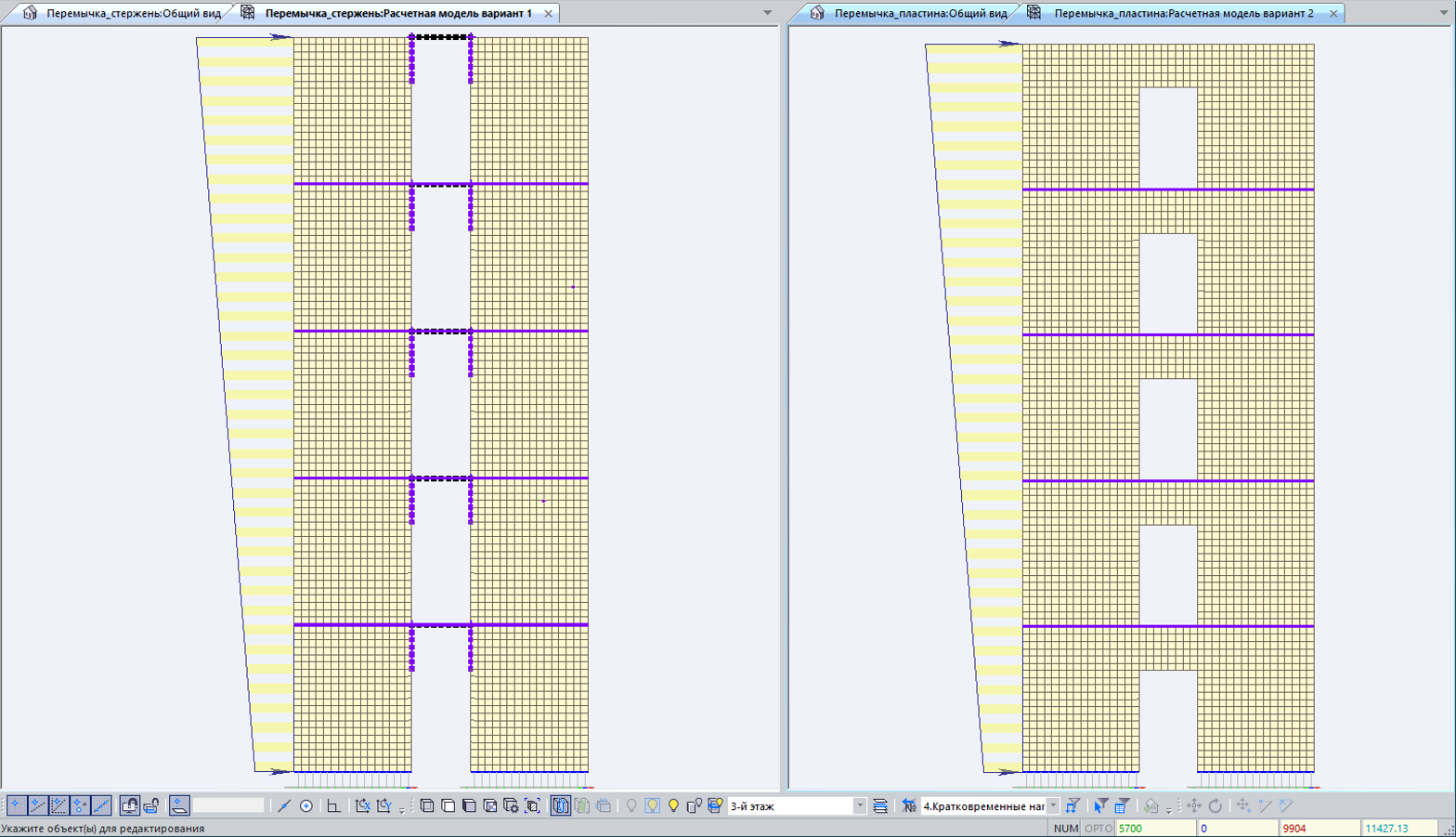 Тем не менее, для расчетчика остаётся открытым вопрос – моделировать перемычки, пилоны, простенки – стержневыми или плоскими конечными элементами?