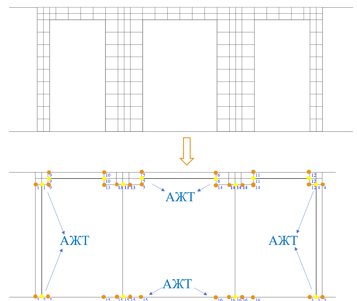 Это вызвано желанием пользователя на основе архитектурной модели указать шаг триангуляции, включить процедуру триангуляции и в автоматическом режиме, якобы, решить все проблемы. Здесь необходимо иметь в виду что и пилон, и простенок, и перемычка по характеру своей работы (отношение h/l) ближе к работе стержня, а не к балке-стенке. Так согласно ДБН В.2.6-98 2009 "Бетонные и железобетонные конструкции" 5.3.1.3 Балка - это элемент, у которого пролет не меньше чем втрое превышает общую высоту сечения. В противном случае она должна рассматриваться, как балка-стенка) [1].