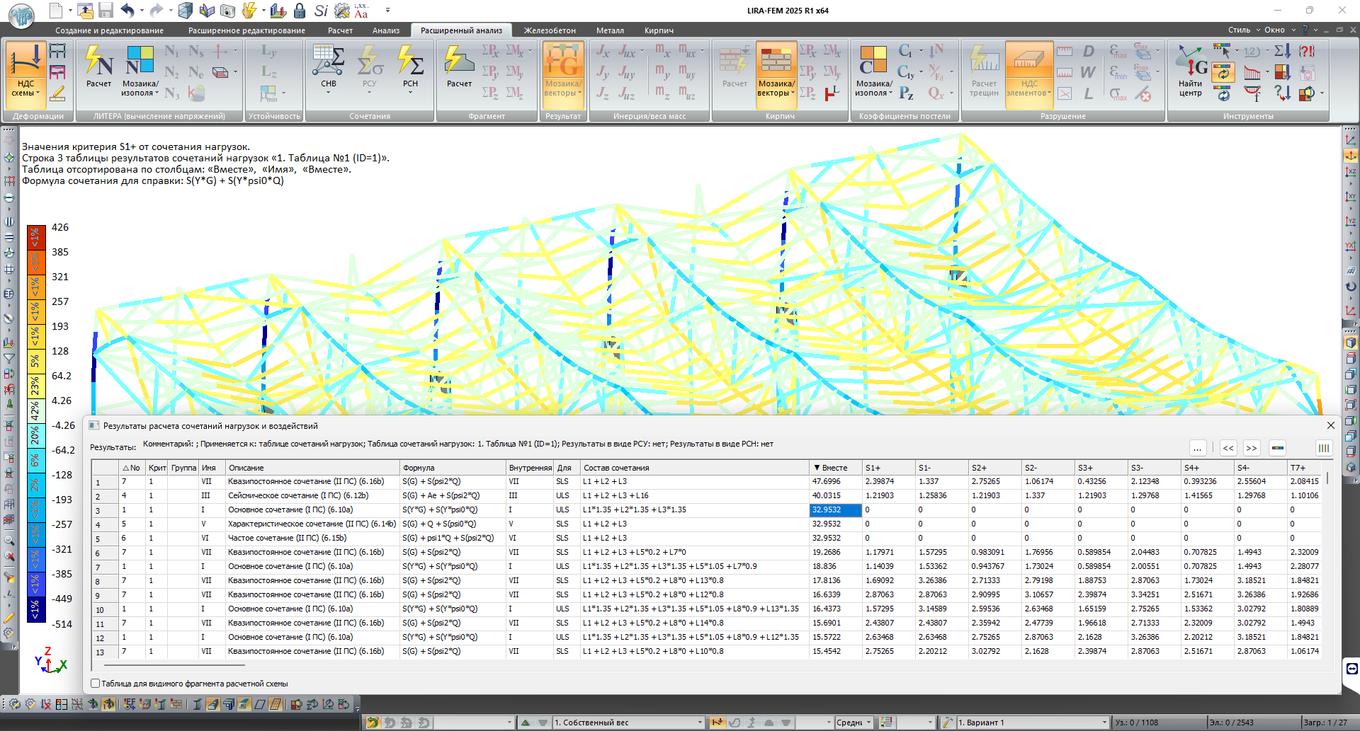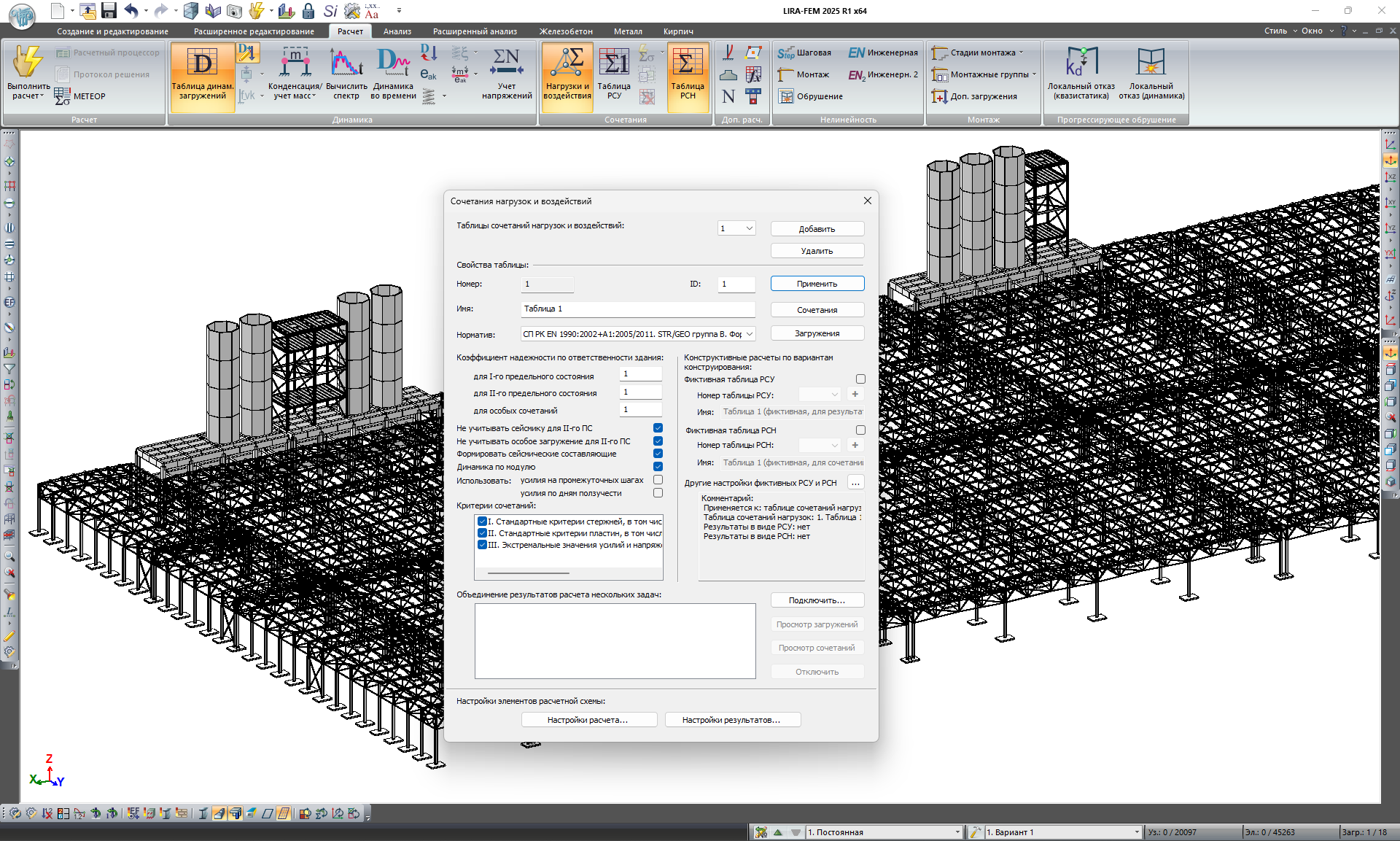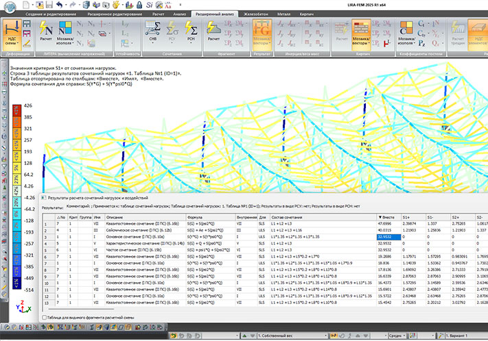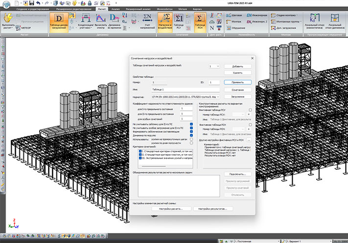 Как уже было сказано выше, новый инструмент создания сочетаний загружений Сочетания нагрузок и воздействий объединяет в себе возможности старых инструментов РСУ, РСН и МЕТЕОР, что само по себе уже удобно. Но возможности нового инструмента не исчерпываются повторением возможностей предыдущих систем.