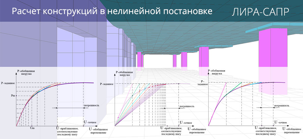 В программных комплексах семейства ЛИРА реализация нелинейных методов осуществлялась уже в самых ранних версиях (1,2). В современных версиях ПК ЛИРА-САПР реализованы все виды нелинейности включая инженерную нелинейность.