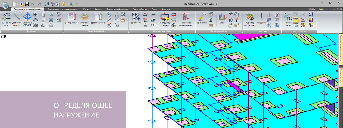 Вывод: Рассмотренные примеры применения принципа «определяющее нагружение», по-видимому не исчерпывают все области его применения. Инженерная практика будет подсказывать эти области, которые и будут реализовываться в ПК ЛИРА-САПР.
