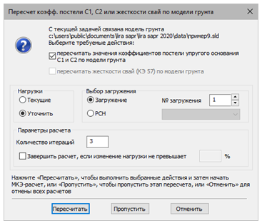 При моделировании свайных фундаментов в ПК ЛИРА-САПР есть возможность уточнять нагрузки на оголовки свай для пересчета жесткостей (жесткости меняются с учетом взаимовлияния осадок в группе свай, поскольку поменялись нагрузки на оголовки соседних свай). Начиная с версии ЛИРА-САПР 2019, реализован инструмент для автоматизации выполнения итерационных расчетов (без участия пользователя) (рис.10).