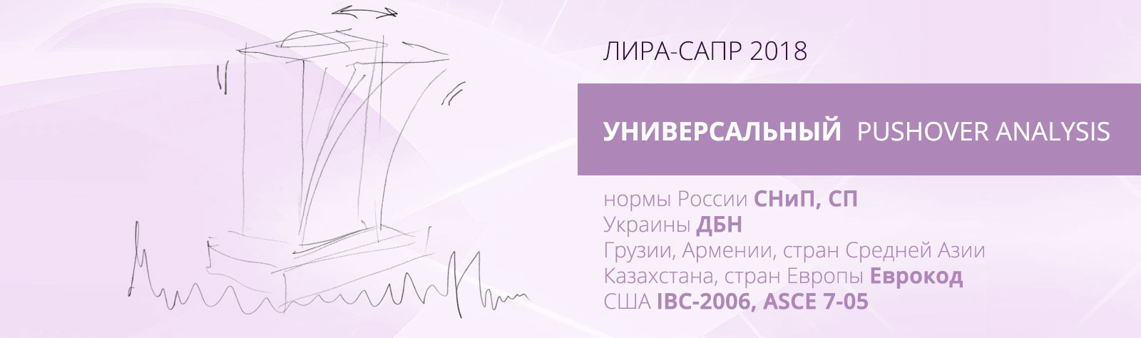 Реализованный в ПК ЛИРА САПР алгоритм Pushover analysis является универсальным и может быть применен ко всем возможным спектрам реакций. Это зависимости «коэффициент динамичности β – период колебаний Т» в нормах России (СНиП, СП), Украины (ДБН), Грузии, Армении, стран Средней Азии. Это и зависимости «ускорение Sa – перемещение Sd» в нормах Казахстана, стран Европы (Еврокод), а также США (IBC-2006, ASCE 7-05). Допускается также задание произвольных пользовательских спектров и спектров реакций от пользовательских акселерограмм.