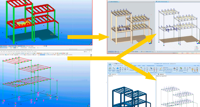 В ЛИРА-САПР 2016 реализована технология позволяющая импортировать в ПК ЛИРА-САПР расчетную схему, созданную в программе Tekla Structures, выполнить статический и динамический расчет, подобрать сечения элементов и армирование, результаты расчета экспортировать в Tekla Structures с последующим получением чертежей КМД и ЧПУ.
