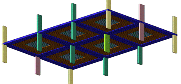 При проверке эффективности прямого моделирования принята усредненная ячейка (7800мм х7800мм) перекрытия с постнапряжением, наиболее часто применяемая при реализации объектов (рис.1).