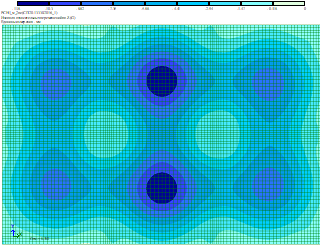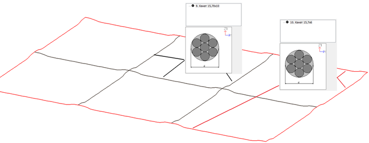 Для прямого моделирования, согласно [1] была выполнена раскладка канатной арматуры и в САПФИР определена температура для КЭ 310 согласно геометрии раскладки и характеристикам канатов (рис.3).