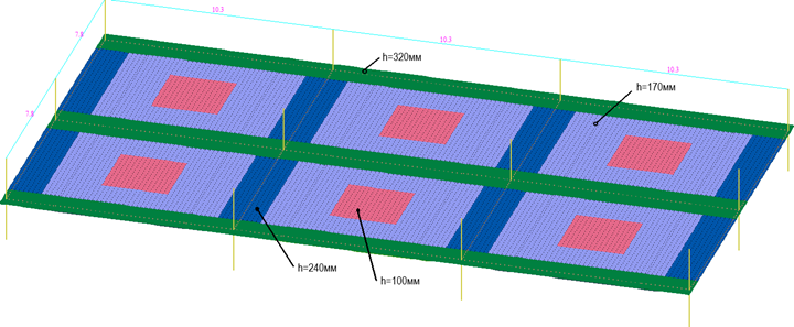 Быстрота и удобство расчетов позволили расширить область поиска решений, сделав расчет не в стандартной ячейке 7800*7800, а в ячейке 10300*7800. Расчет для других размеров ячейки увеличивает возможности оптимизации за счет сокращения количества вертикальных несущих конструкций и увеличения полезной площади.
