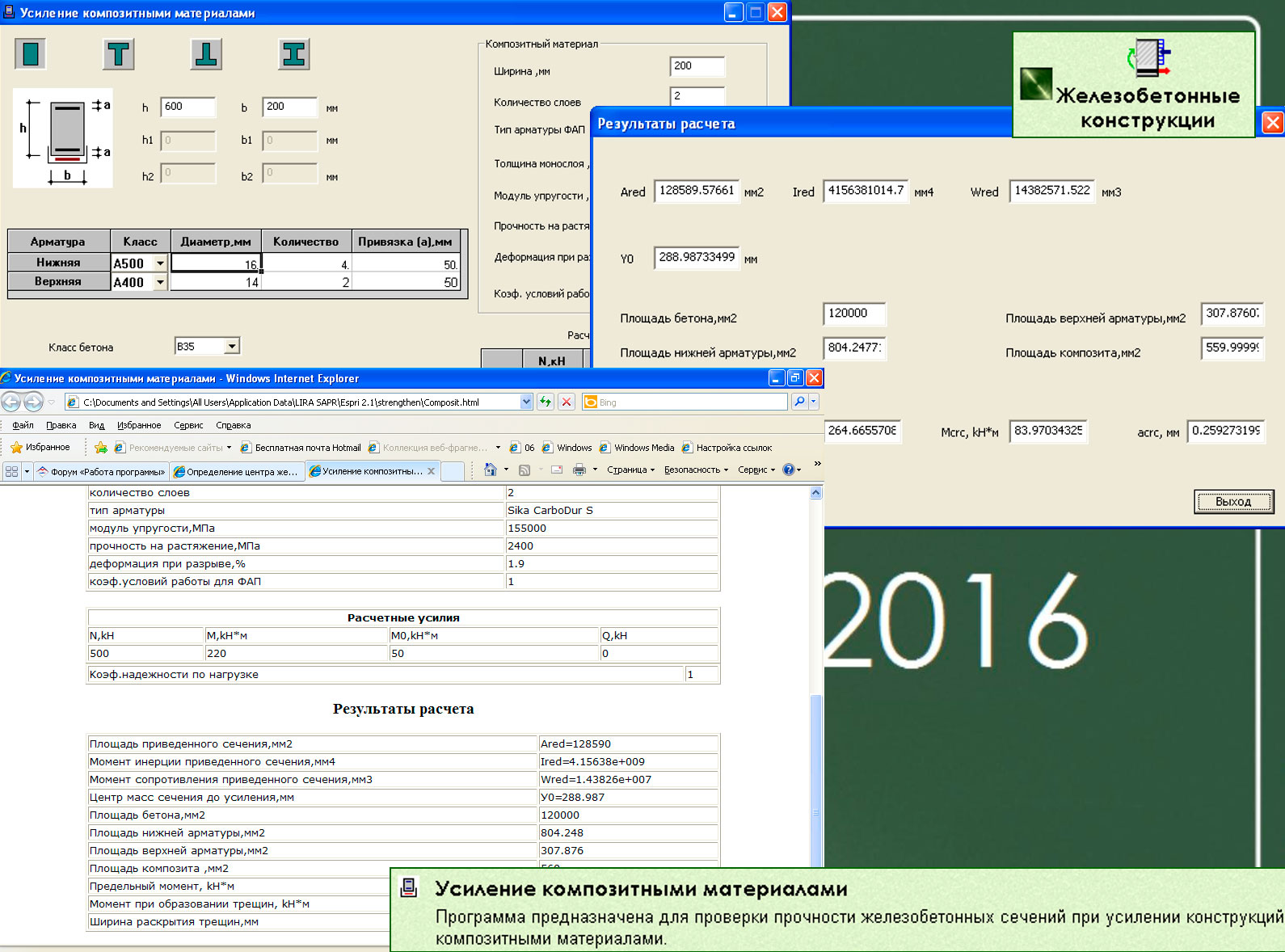Программа Усиление композитными материалами предназначена для проверки прочности железобетонных сечений при усилении конструкций композитными материалами