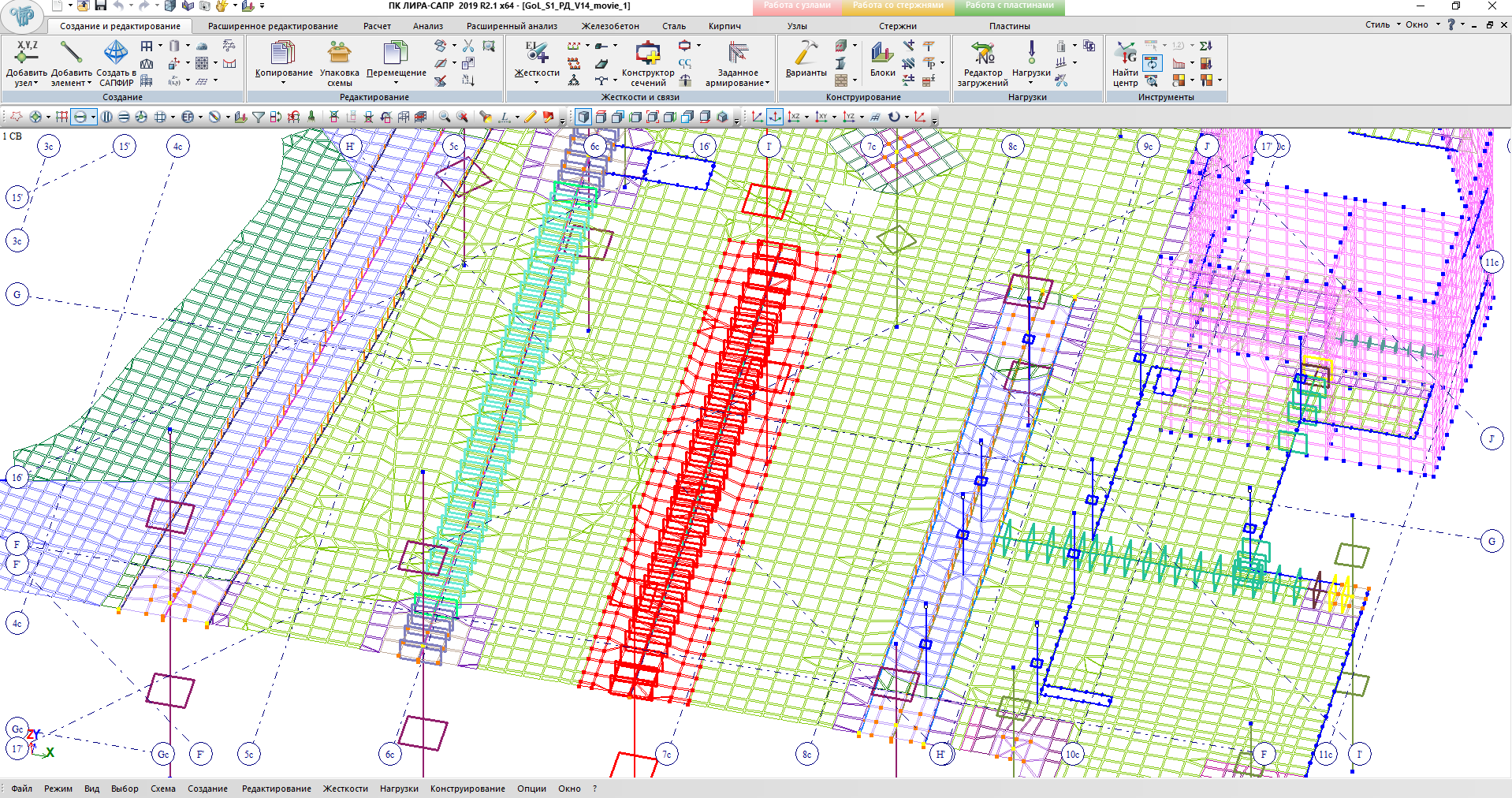 Рис.1. Фрагмент расчетной схемы в ВИЗОР-САПР