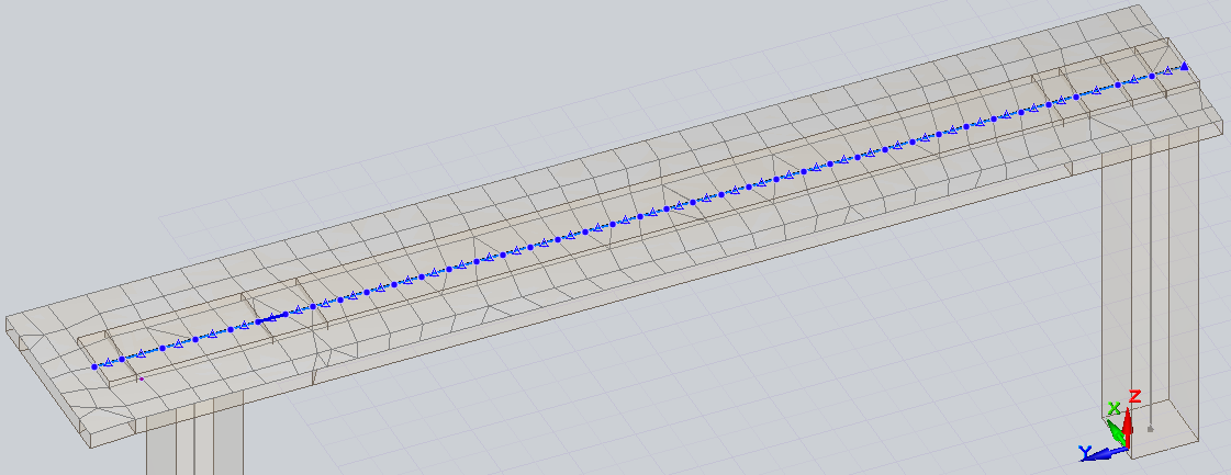 Таким образом формируется второй набор точек, который в паре с первым набором позволяет создать прямые вертикальные отрезки (рис.6) (в виде балочек сечением 5х5, которые можно будет быстро отфильтровать в ВИЗОР-САПР и переназначить как КЭ10 (численное), либо сменить тип конечного элемента в окне Свойств-Жесткость в САПФИР-3D). Связующие отрезки с жесткостью КЭ10 (численное) будут передавать усилия от напряжения на конструкцию. Кривая каната получает тип конструктива – стержень с контуром сечения – канат (рис.7).