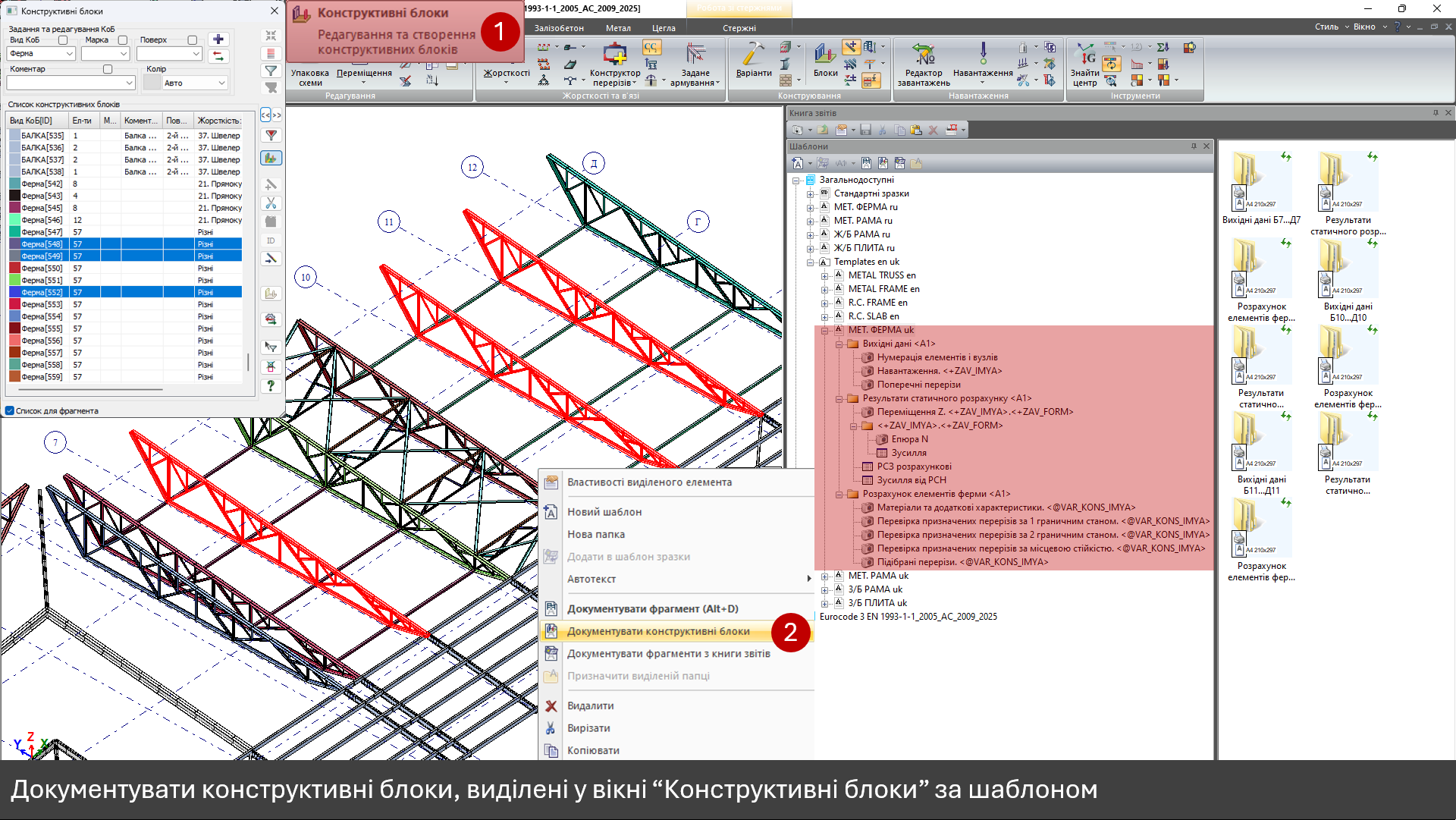 На рис. 1 показаний шаблон «Металева ферма»: до нього входять 3 розділи та 13 елементів.