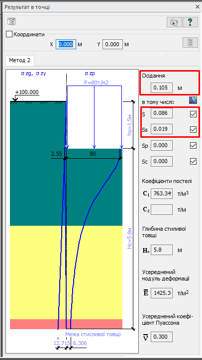 Виходячи з цих даних, ми можемо порахувати повні деформації основи, з урахуванням особливостей водонасичених органічних ґрунтів: