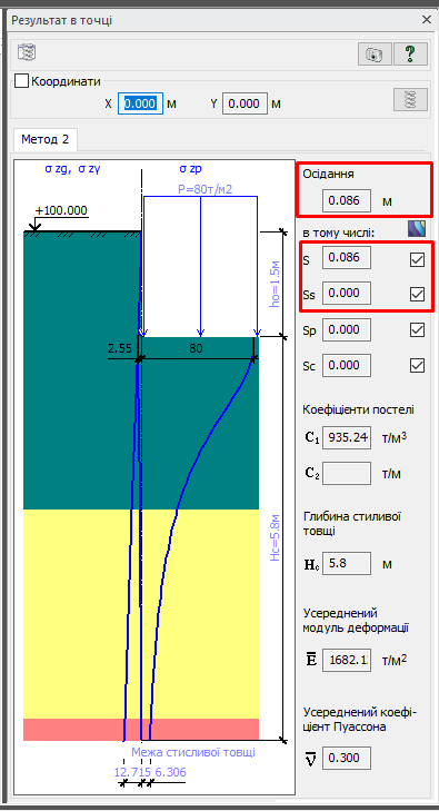 Виходячи з цих даних, ми можемо порахувати повні деформації основи, з урахуванням особливостей насипних ґрунтів: