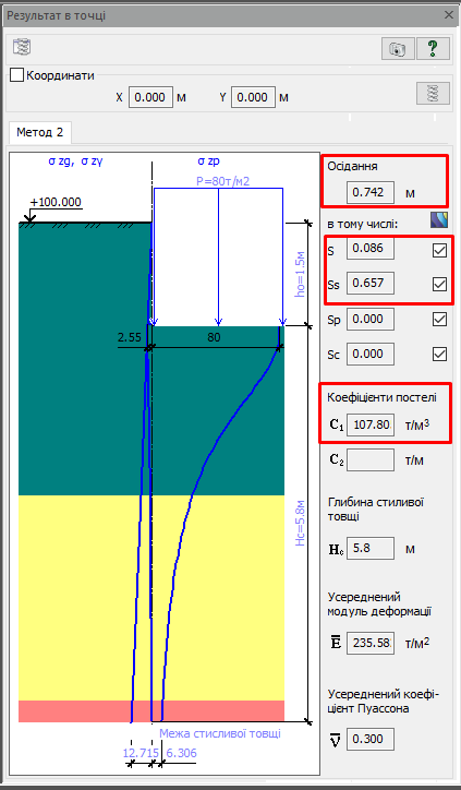 Виходячи з цих даних, ми можемо порахувати повні деформації основи, з урахуванням особливостей просідаючих ґрунтів: