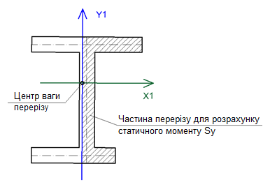 де S0 – статичний момент частини перерізу, яка знаходиться по один бік від осі, що проходить через центр ваги перерізу;