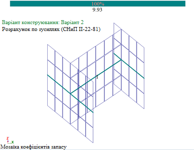 Мозаїку коефіцієнтів запасу при аналізі спільної роботи поздовжніх та поперечних стін показано на рисунку 14.
