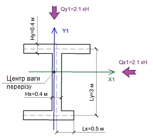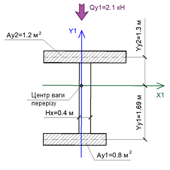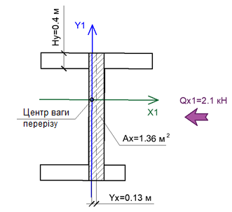 За формулою (2) виконаємо перевірку на зсувне зусилля QX1. Геометричні параметри, що використовуються при даній перевірці, показані на рисунку 6.