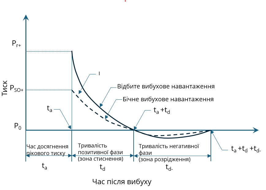 ta - час досягнення пікового тиску. Часовий інтервал від початку вибуху до досягнення максимального тиску;