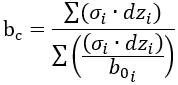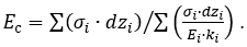 Формула розрахунку усереднених значень Eс та bс обирається в залежності в обраних нормативних документів, згідно з якими виконується розрахунок. У випадку розрахунку за нормами ДБН значення Eс та bс розраховується за формулами: