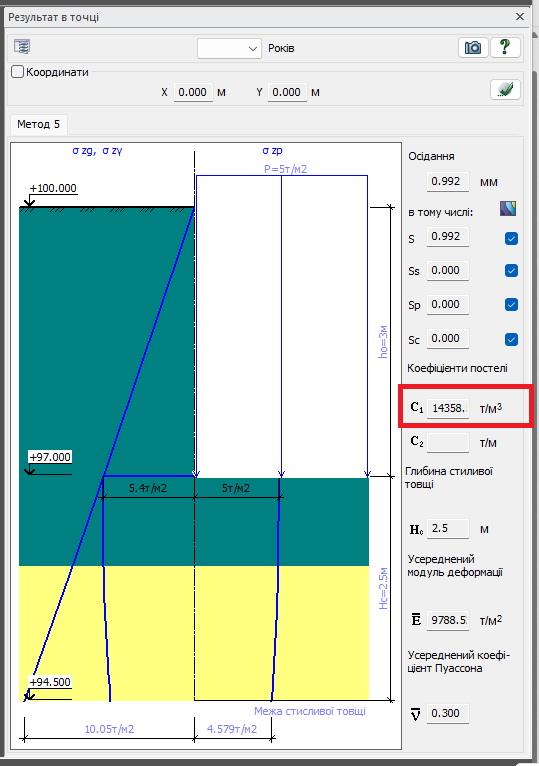 При розрахунку за методом 5, коефіцієнт жорсткості пружної основи С1 визначається за формулою: