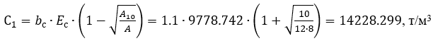 Використовуючи отримані значення Eс та bс підставимо їх у рівняння 1 та розрахуємо значення коефіцієнту постелі С1: